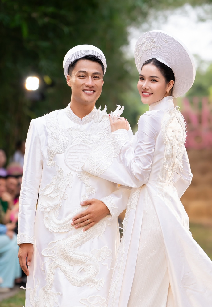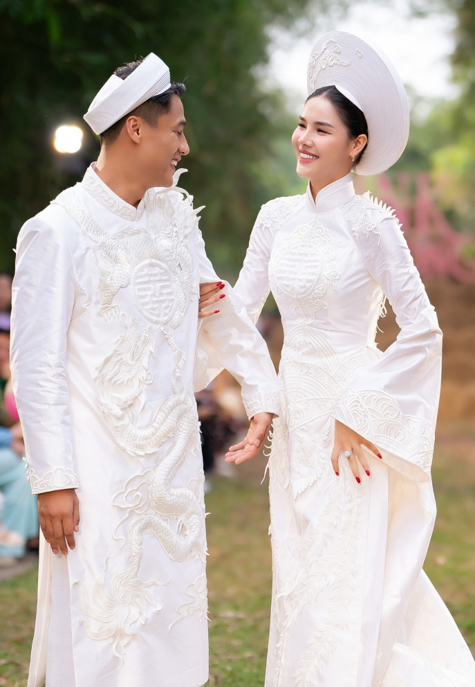 Trình diễn cho BST Hồ điệp của NTK Nguyễn Trường Duy, vợ chồng diễn viên Anh Đức - Anh Phạm có dịp "cưới lại". Anh Đức cho biết từng trình diễn thời trang vài lần nhưng đây là kỷ niệm đẹp của anh với bà xã Anh Phạm.