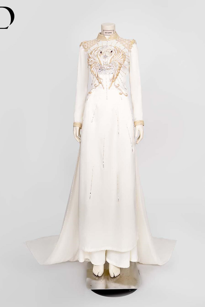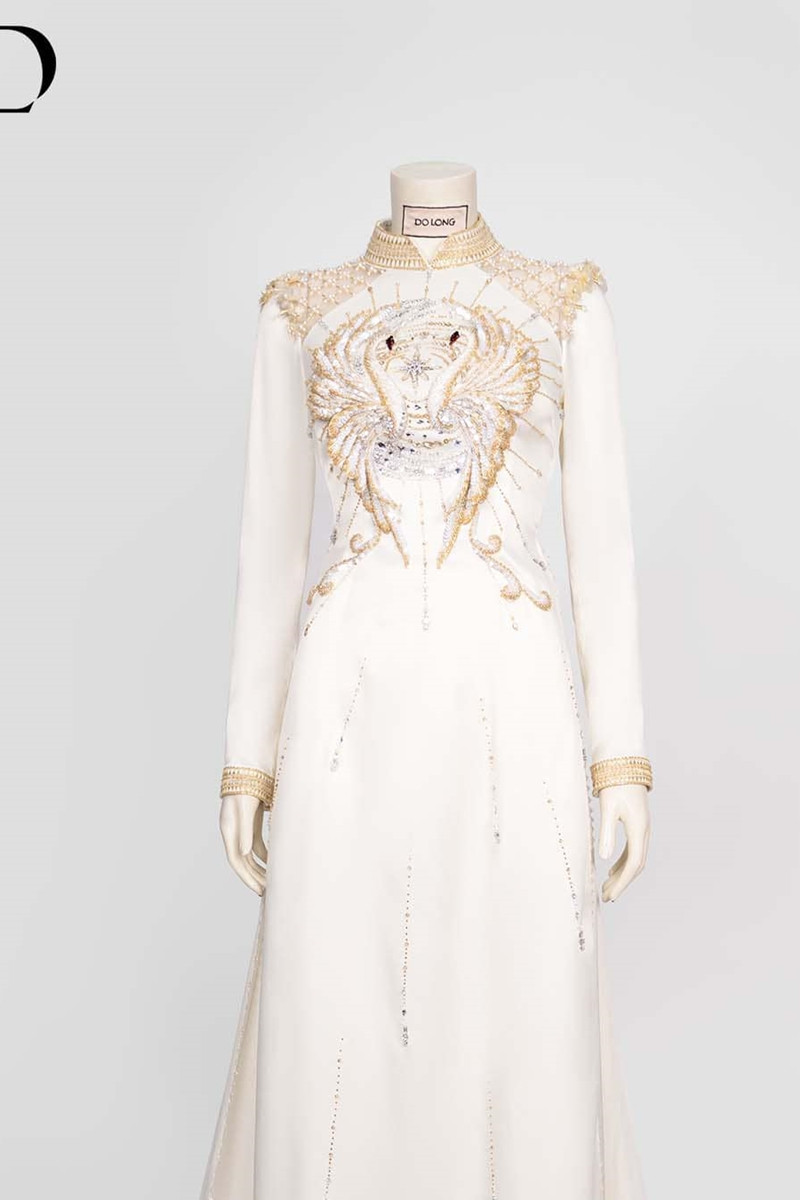 NTK Đỗ Long đã sử dụng hơn 200 viên đá Swarovski các loại, được 4 người thợ lành nghề nhất thực hiện công đoạn đính kết trong hơn 100 giờ. Mỗi chi tiết trên áo đều được chăm chút kỹ lưỡng, từ họa tiết đến đường kim mũi chỉ.
