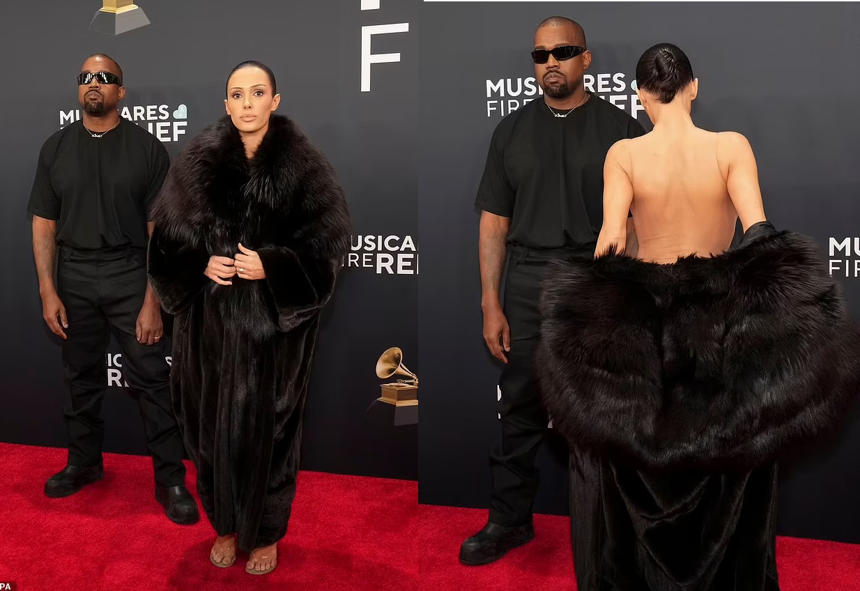 Kanye West và Bianca Censori trở thành tâm điểm chú ý trên thảm đỏ lễ trao giải Grammy 2025 sáng 3/2 (theo giờ Việt Nam). Bianca Censori khoác chiếc áo lông dài che kín người tới sự kiện nhưng chỉ ít giây sau cô bắt đầu cởi áo, để lộ bộ đồ màu da bó sát xuyên thấu bên trong mà không mặc nội y khiến nhiều người nóng mắt.